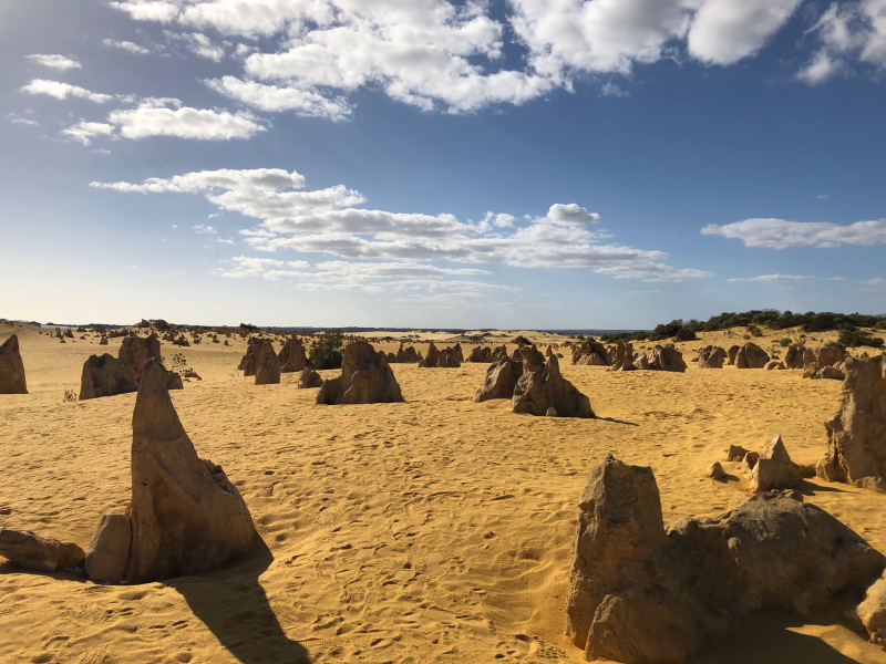パース市内から北に200km、荒野の墓標と呼ばれるピナクルズ。石灰質の大きな岩が何万年もかけてこのような奇岩になったと言われています。404ヘクタール、東京ディズニーランドの5倍もの広さに広がる奇岩の風景は圧巻です。