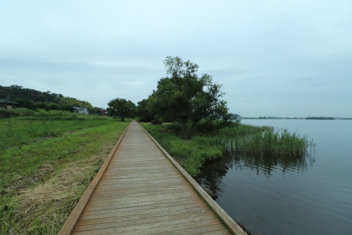 アヤメ園から牛久沼に沿って20分ほど歩くと「河童の小径(かっぱのこみち)」と呼ばれる場所に到着します。こちらには、短いですがボードウォークが整備されていて、より近くで沼を見学できるようになっています。