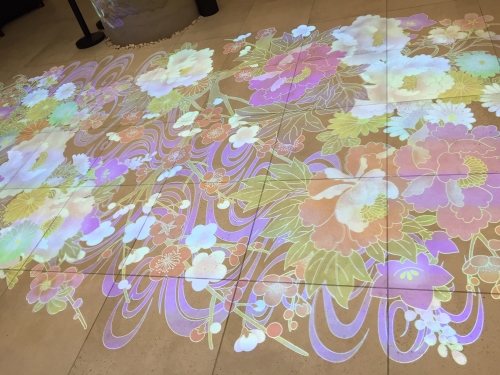 さらにロビーには、床と柱に和の趣のあるプロジェックションマッピングが映し出されます。
