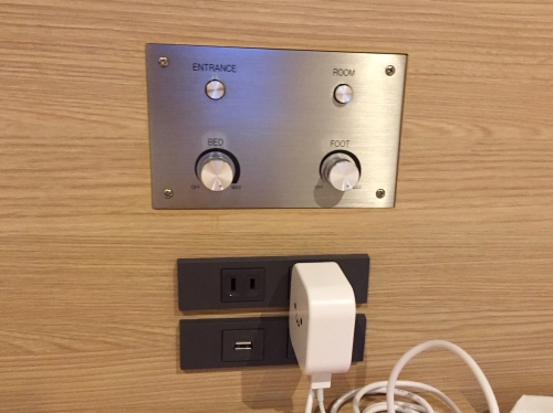 ツインベッドの枕元にはコンセントが2つあり、館内はフリーWi-Fiなので、気兼ねなくスマートフォンやタブレットを使えます。