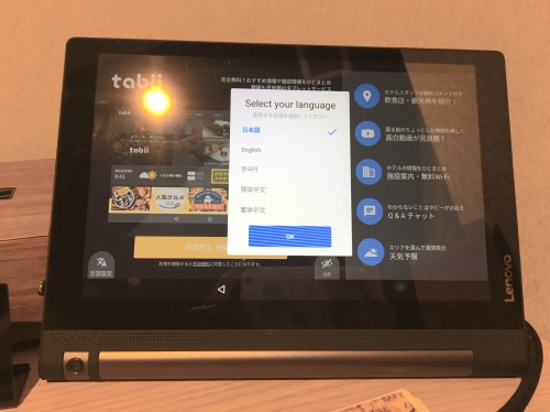 また、近くの飲食店やお土産屋さん等を調べるのに便利な、'tabii'と呼ばれるタブレットが部屋に置いてあります。