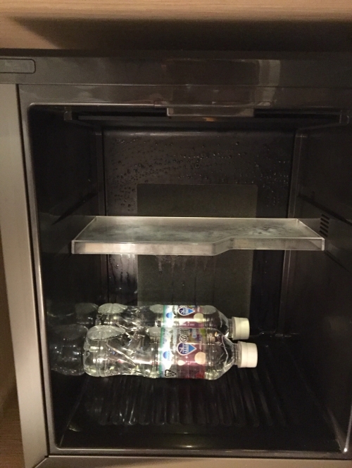 部屋の冷蔵庫には、人数分のミネラルウォーターが入っています。
