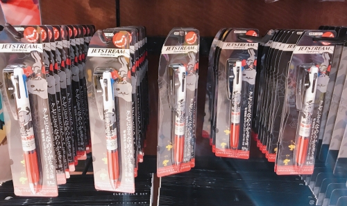 他にも、クリアファイルセット(4枚で1,200円)や人気ボールペン「JETSTREAM」とコラボした3色ボールペン(1つ1,100円)なども販売されています。先ほどのバインダー同様、文房具などの事務用品は使う機会も多いので、ついつい買いたくなってしまいますね。