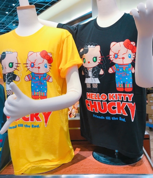 スヌーピーに続いて、ハローキティもハロウィーン仕様に大変身です!こちらはホラー映画『チャイルド・プレイ』シリーズに登場するキャラクターの「チャッキー」とコラボしています!