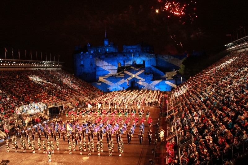 ミリタリー・タトゥとは、スコットランドのエディンバラ城で毎年8月に開かれている、スコットランドの伝統を結集したお祭りで、正式名称は、ロイヤル・エディンバラ・ミリタリー・タトゥー(Royal Edinburgh Military Tattoo)といいます。毎年20万人以上の観客が訪れる、世界最大規模の軍楽祭です。