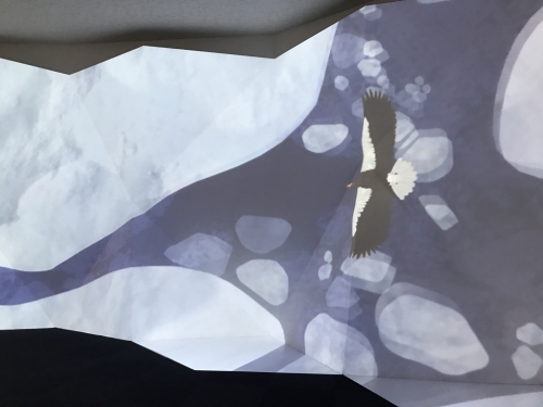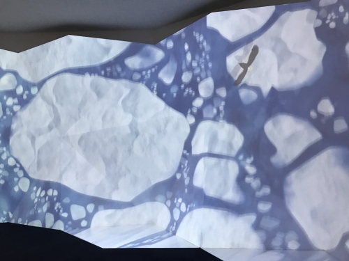 展示室では他にも、流氷の様子を美しく描き出したプロジェクションマッピングを楽しむことができます。