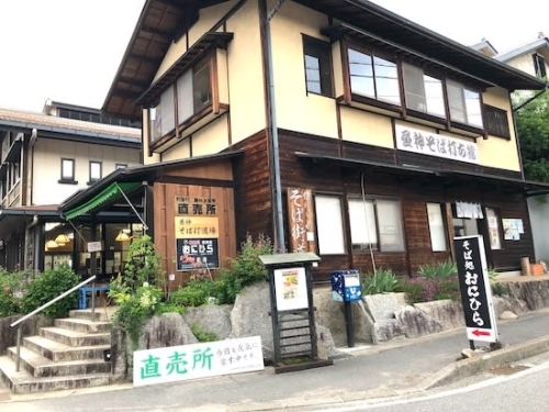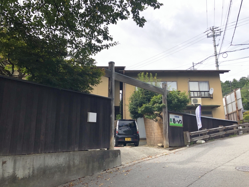 「料理旅館 むらさわ」さんは、昼神温泉街の中心地というより、国道256号線からすぐのところにあります。目印は、コンビニ(2025年現在はファミリーマート)と、えんまんというおやき屋さんです。