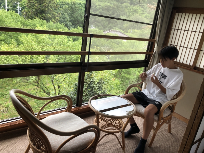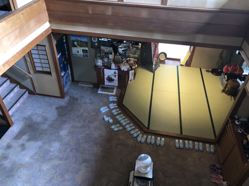 筆者は今回は2Fの客室へ通されました。全体的な年季が肩肘張らない良い雰囲気で、吹き抜けの廊下もまた趣があります。