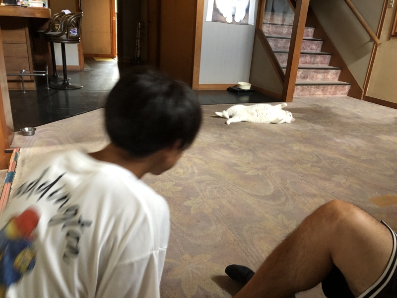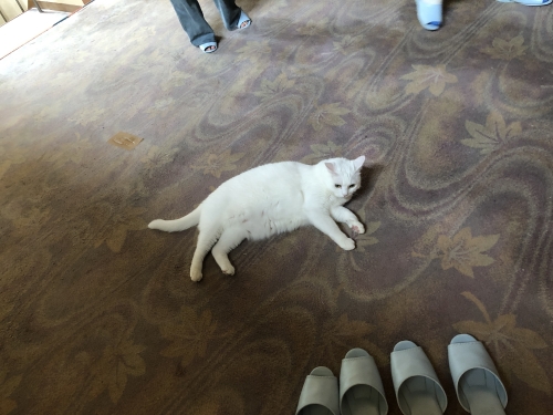 人懐っこいというより、“我が道をゆく”という感じの子で、自由気ままにカーペットの上でゴロゴロ。お客さんが来ても物怖じせず、どーんと構えています。