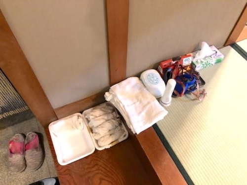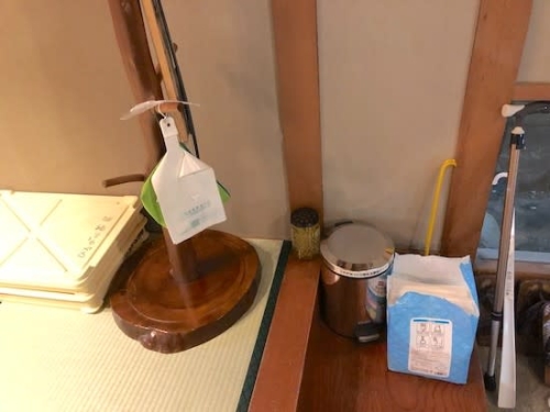 うんちを取る袋や、その袋をそのまま捨てても良い蓋付きゴミ箱、また散歩から帰ってきて旅館内に上がる際のペット用足拭きタオルに、リードやウェットティッシュ、また暗い時間に外に出られる方のために懐中電灯があるなど、とにかく至れり尽くせりです。