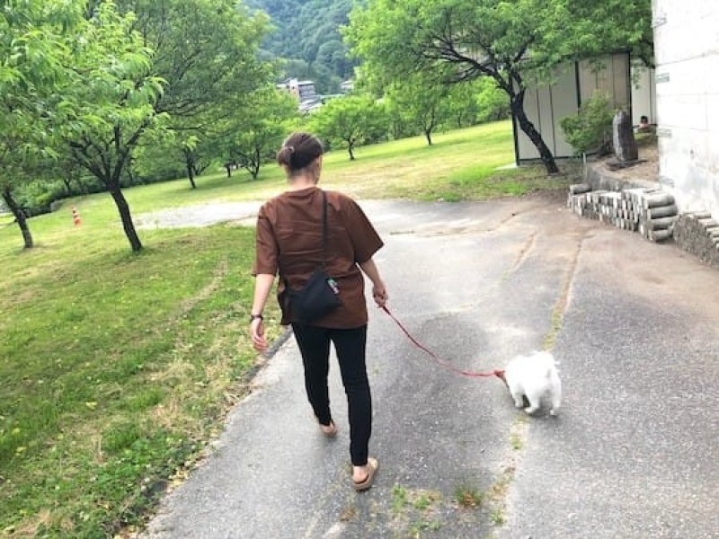 せっかく昼神温泉郷に来たからには、お土産屋さんや近くの川沿い、また花桃の木が植えられている所などなど、温泉街もペットと一緒にお散歩したいですよね。