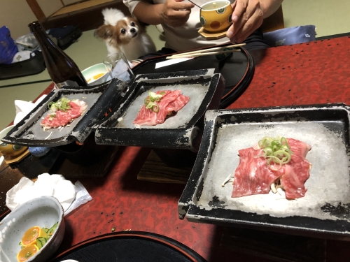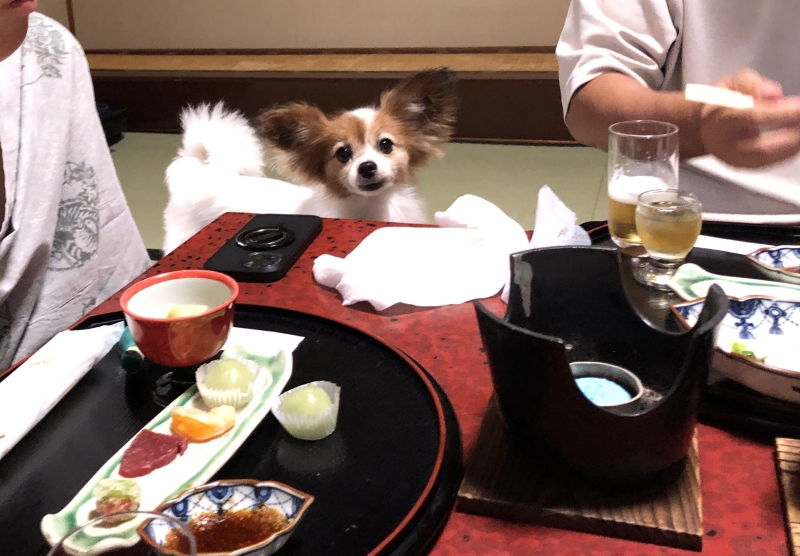 昼神温泉街の散策や温泉を楽しんだら、いよいよ美味しい夕飯の時間です🎵 もちろん、ペットが一緒のお部屋で食べることができます。