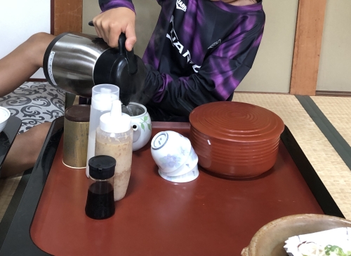 特に、夜の牛肉の下に敷かれていた自家製味噌も再び出してくださるのですが、これがまた白飯にとっても合います!お米はおひつで出してくださるので、いっぱい食べられます。