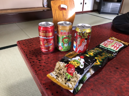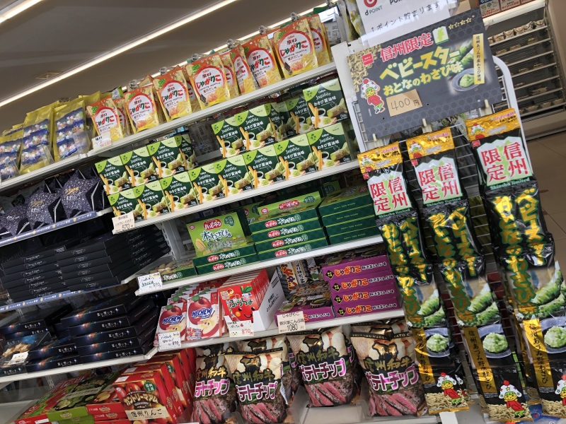 特に、このコンビニは信州ならではのご当地ものがたくさん売られていて、物色も楽しくなります。地ビールに、地産地消のおつまみ、地元のカップラーメンなどなど、お土産にも買いたくなるものがたくさん。