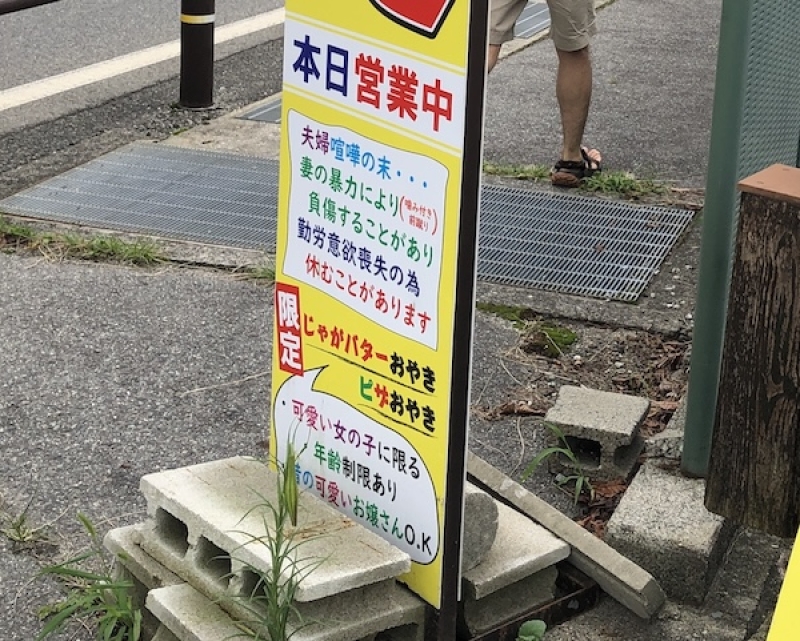 「えんまん」という店名のおやき屋さんなのですが、看板の文言がなかなか面白く、つい読んでしまいます(笑)。