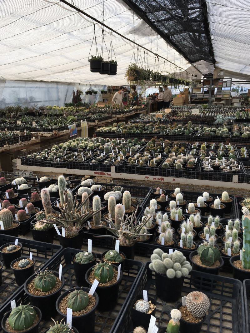 温室内はさながら植物園で、小さな赤ちゃんサボテンから人の背丈より高い巨大なサボテンまでたくさんの種類・年齢のサボテンが並べられています。お気に入りの植物をいくつかカゴに入れたら、店主さんに相談しながらオリジナルの寄せ植えを作るのもおすすめです。