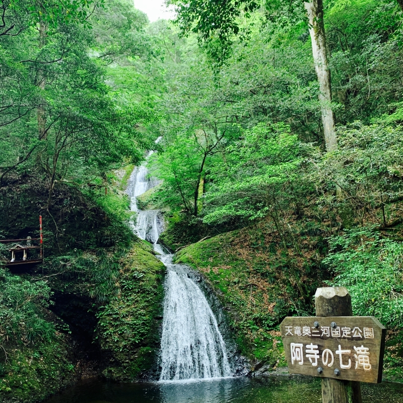 巣山高原から流れる水が、礫岩の7段の階段状になっている崖を流れ落ちることから、「七滝」と名付けられた幽玄な滝。「日本の滝100選」にも選ばれ、周辺も含め国の名勝および天然記念物に指定されています。