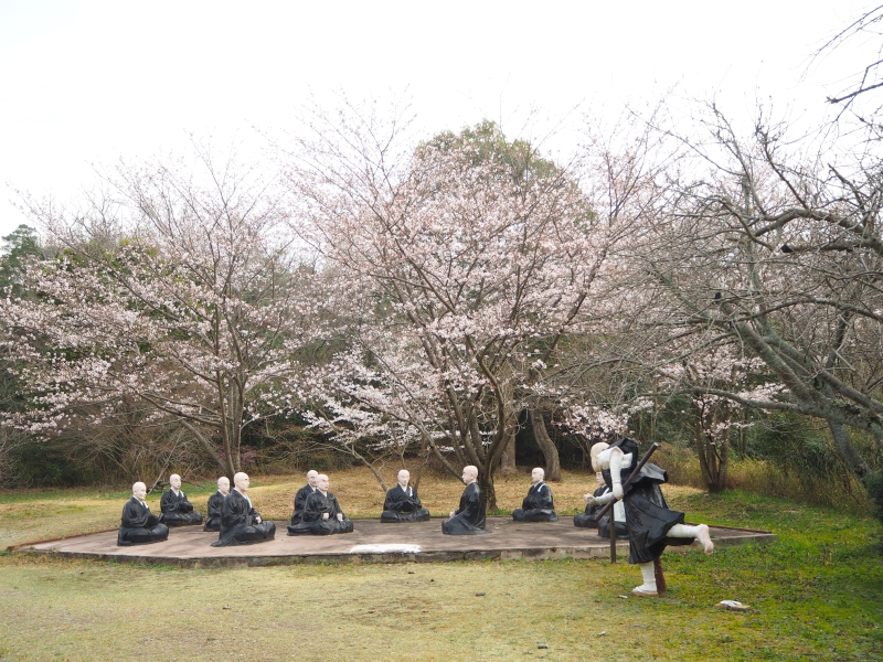 また親鸞聖人(浄土真宗の開祖)の教えを視覚的にわかりやすく教えることを目的とした、高さ2mほどのコンクリート像が数多く点在しています。園内は舗装された道路が通っていて、合計7か所の駐車場が用意されているので、車で移動することも可能。ひとりでゆっくりと、その迫力にふれたり、写真撮影を楽しんでみるのもおすすめです。