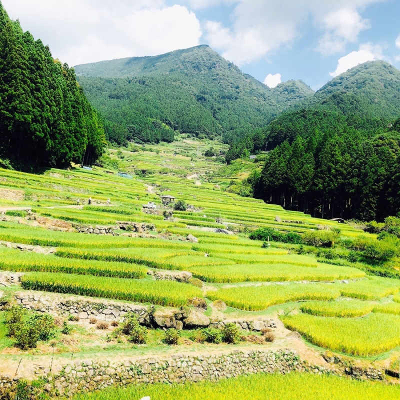 鞍掛山の斜面に広がる山間集落に、約400年前に開墾された石積みの美しい棚田。標高220~420mの位置にあり、現在20戸の農家が約420枚の水田を耕作して、この絶景を守り続けています。