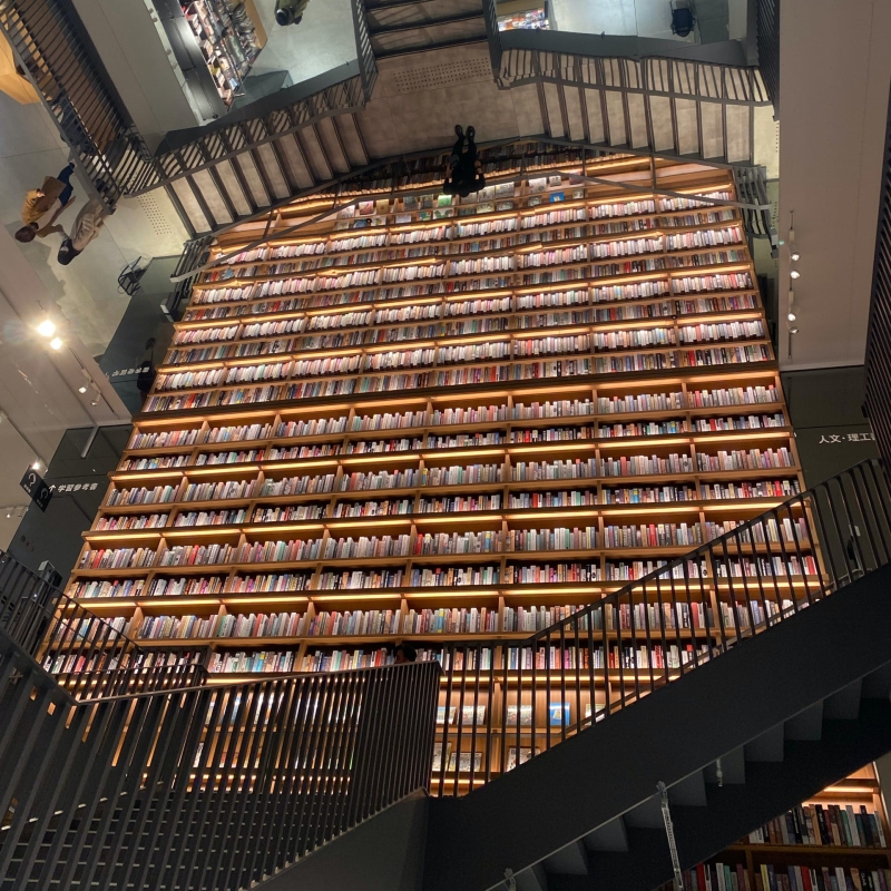 SNSで話題となっているのが、本棚のディスプレイ!TSUTAYA BOOKSTOREの階段に設置されているもので、天井が鏡になっているため巨大な本棚のようになっています。本好きのカップルの雨の日デートスポットにもってこいです。