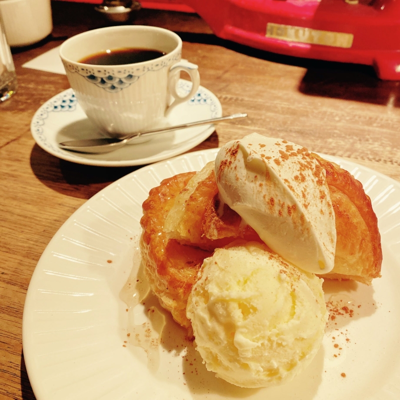 一押しのメニューは、注文を受けてから焼き上げるアツアツのアップルパイ!冷たいバニラアイスとともに頬張れば、思わず笑みがこぼれてしまうことでしょう。11時〜23時(日曜のみ22時半)までオープンしているので、夜カフェにもおすすめです。