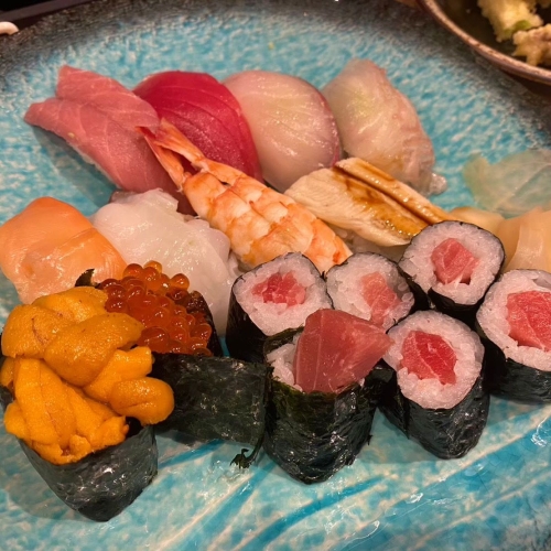 希凛は、魚の棚商店街の西よりの方にあります。本店はスタイリッシュでモダンな外観ですが、店内に足を踏み入れると落ち着いた雰囲気が漂っています。テーブル席でみんなでワイワイいただくのも良いですが、オススメはカウンター席。その醍醐味は、何といってもカウンター越しに見える職人技です。仕込みも握り方も、江戸前。この丁寧な仕事ぶりを見ることができ、何とも贅沢なひと時を過ごせます。お寿司はお客の食べるペースを見計らってネタを提供してくださるので、最高の状態で味わうことができます。