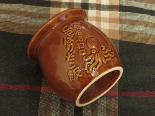 お弁当が入っている陶器は、明石が発祥といわれるたこ壺漁に使用する壺を模して独自に焼き上げたこだわりの品。落ち着いた色味に立体感のあるたこが描かれた陶器はおしゃれで、かつしっかりとした作りなので食べ終わった後も再利用が可能です。