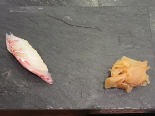 お寿司はお客の食べるペースを見計らってネタを提供してくださるので、最高の状態で味わうことができます。その日の仕入れによってネタは変わりますし、隣のグループのお客さんと違うネタになることも。ちなみに名脇役のガリは、なくなれば追加してもらえます。