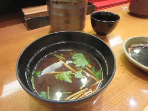 希凛のお昼の「おまかせ握り」のお品書きは、つき出し・おまかせ握り10貫・赤だし。席につくとおしぼりなどがセットされます。小皿に醤油を入れてスタンバイします。