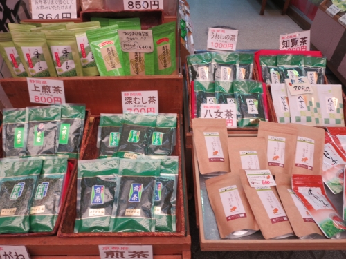八女茶、知覧茶、うれしの茶(1袋各1,000円)が揃っていて、さらに静岡や京都の美味しいお茶も販売しています。自家製のティーパック商品もありますので、お土産にしてみてはいかがでしょうか。