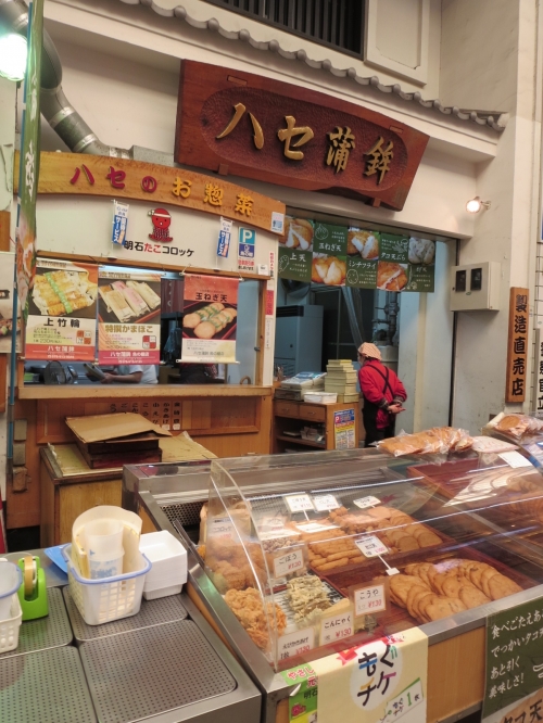 明石で有名な「ハセ蒲鉾」の製造直売店です。人気商品は上天(130円)!歯ごたえがよく1枚で満足感が得られます。筆者のオススメは、特選かまぼこ(630円)・上竹輪(230円)ですが、たこ天(300円)、たこコロッケ(150円)も味わっていただきたいですね。時間帯によって奉仕品(3枚280円)がありますよ。