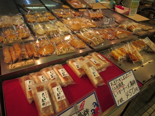 三ツ星と言えば、昔ながらの手作り製法で作られた上平天(140円)!噛みしめるほどに旨味が口の中に広がります。たこ蒲鉾(450円)も捨てがたいですよ。他にも、食べごたえ抜群の穴子一匹巻き(800円)や12月限定のいかチーズ蒲鉾(450円)などもあり、珍しい商品に目移りしてしまいます。