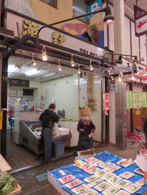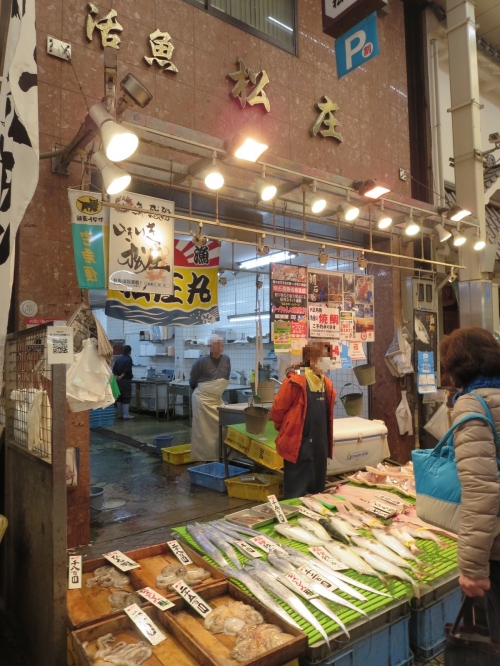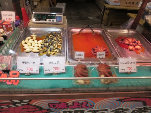 【1】でご紹介した西店と同じような商品が販売されています。魚の開き(400円~800円)、子持ちイカ(100g700円)がオススメ。たこの柔らか煮(100g700円)も人気があり、よく売れていますよ。