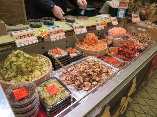 珍味や練物、海産物、佃煮などを販売しています。見るからに美味しそうな商品が並んでいますが、オススメは梅しそひじき(200g700円)とたこキムチ(200g1,000円)だそう。試食もできるのでお気に入りの味を探して、お好みの分量をパックに詰めてもらいましょう。