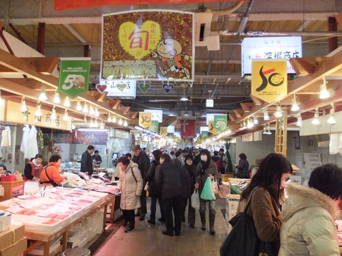 JR秋田駅から徒歩5分ほどと、アクセスも抜群な市民市場。魚、肉、野菜、果物はもちろん、秋田土産から日用雑貨まで約80店舗が軒を連ね、威勢の良い声が響き渡っています。また市民市場直営のお寿司屋さんがあるなど、食事も楽しめます。