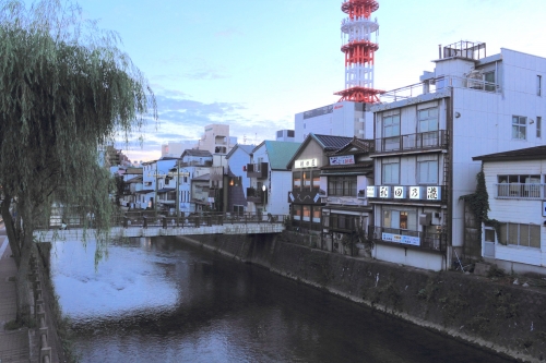 「川反(かわばた)」という名の由来になったのは「旭川」。この旭川に沿って、今でもたくさんのお店が並んでいます。花街として栄えた当初は、「川の端」ということで「川端(かわばた)」と呼ばれていました。