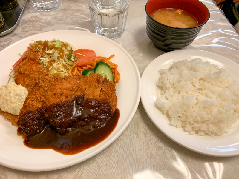 筆者は商店街で昼食を取るため、色々ある飲食店の中から「堂島グリル」さんを選び、入ってみました。こちらは、カレーやとんかつ、海老フライといった料理がいただける洋食屋で、お昼には多くの人が訪れています。