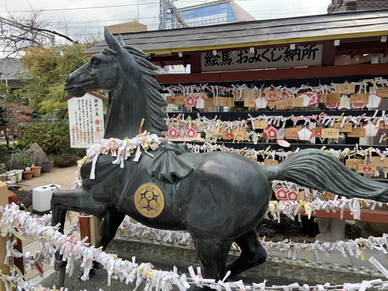 こちらは「勝ち馬さん」と呼ばれる願掛け馬です。人々の願いを神様に伝え、勝負運や自分に打ち勝つ力を授けてくれるそうです。負けられないことがあるというときに、願いをこめて馬に触れてみてはいかがでしょうか。