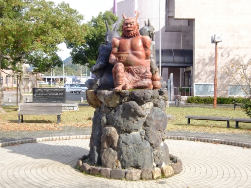 ポイント3:途中下車の大江駅で鬼たちと記念撮影!