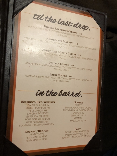 メニューは王道のアメリカのレストランといった感じで、前菜、肉、魚、パスタ、デザートといった内容。 アメリカの都会でちょうど受け入れられる程度の、程よいひねりが効いたメニューです。