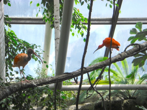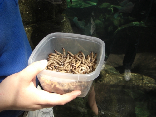 熱帯雨林コーナーには珍しい鳥がたくさん!ピラニアに餌をあげることもできます。こんな虫…日本では見たことがありません。筆者はワリと虫は大丈夫な方ですが、触るのにためらってしまいました。掴んでみると節があって硬い虫です。触れる方はゼヒ!