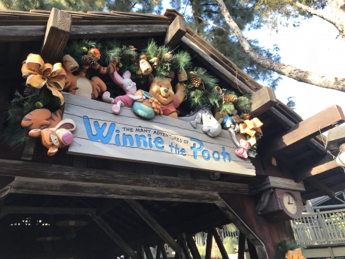 蜂の巣型のライドに乗って100エーカーの森を旅するアトラクションです。出口ではプーさんと仲間たちのグリーティングも開催されています。