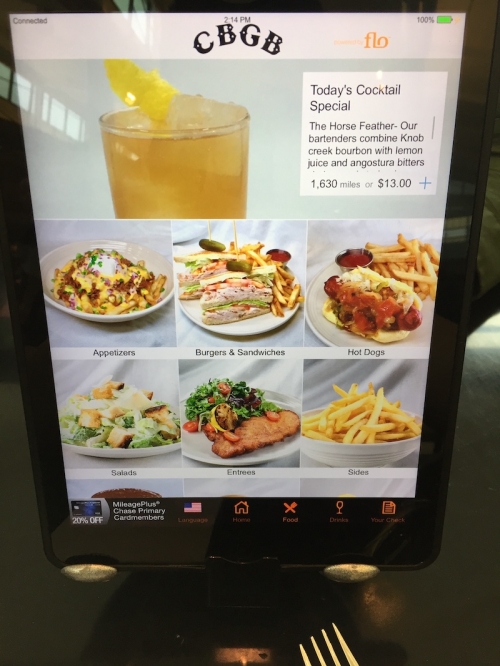 ニューアーク国際空港のターミナルCのレストラン全てに言える特徴でもありますが、テーブルには充電器が備え付けられています。 1テーブルにコンセントプラグ2つ、USB ポートが二つ、そしてクレジットカードのスキャナーが装備されています。