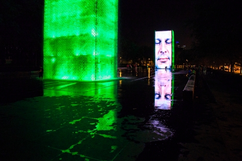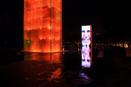 最後にご紹介したいのが、シカゴ美術館の隣にある「クラウンファウンテン(噴水)」です。実はこのスポット・・・・、皆さんが想像するような噴水ではありません。