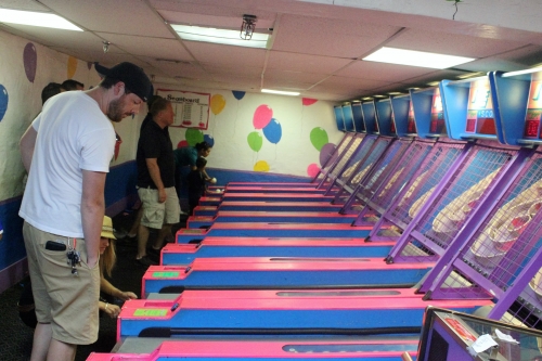 他にも西部劇に出てくる悪者の恰好をして写真が撮れるブースやゲームセンター、似顔絵コーナーまであり、食後の腹ごなしには最適です。客席で配られるコインを使ってゲームに勝つとチケットが出てくるので、それを集めて景品を受け取るか、欲しいものがない場合には子供にあげるとたいへん喜ばれます。