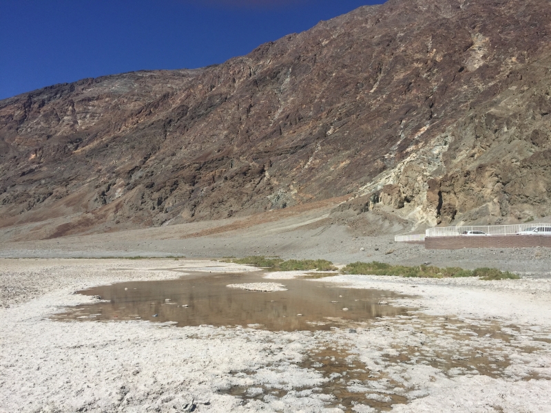 このエリアはアメリカで一番標高が低い地点として有名で、入口の看板にも記載されているとおり、なんと海抜マイナス85.5m。