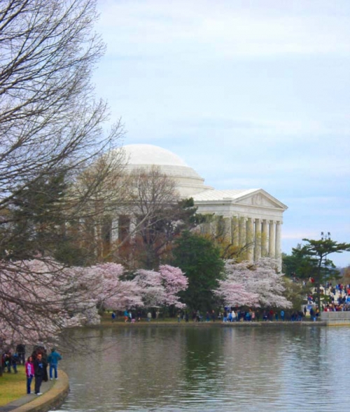 タイダルベイスン周辺には、スミソニアン、ジェファーソン記念館などなど多くの観光名所もあり、桜の季節になると多くの人が訪れます。