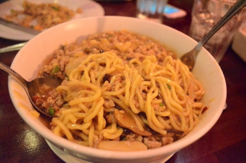 「メイワ/Meiwah」は、アメリカの首都・ワシントンDCのダウンタウンにある中華料理屋。アメリカナイズされた中華系・アメリカ料理が味わえます。写真のものは、「ミートソースのチャイニーズスパゲティ(Chinese Spaghetti with Meat Sauce)」。 12.50ドル/1,375円。他には蒸し餃子や春巻き、焼き飯などがあります。食事の最後にフォーチュンクッキーが提供されるのも特徴です。