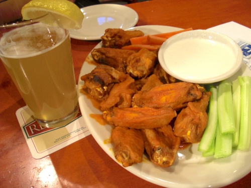 美味しいクラフトビールを求めていくなら、筆者おすすめレストランは「レッド・ロック(RED ROCK)」!Theアメリカンなレストランで、バーカウンターにはNFLを流すテレビあり!ビールは「Pint パイント = 568ml」という一番小さいサイズで $4.75(約600円)、ビールのアテにピッタリな定番おつまみ「Spicy Buffalo Wings」は、写真のボリュームで$10(約1,300円)です。