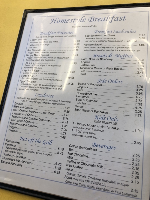 アメリカンダイナー「Seaplane Diner」のメニュー